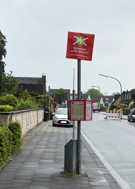 Linie 141 die Busse fahren über Vogelsanger Str. und enden an verlegter (H) Vogelsanger Markt am Kiosk * Goldammerweg, (H) Bachstelzenweg, (H) Steinkauzweg und (H) Kolkrabenweg werden nicht angefahren
