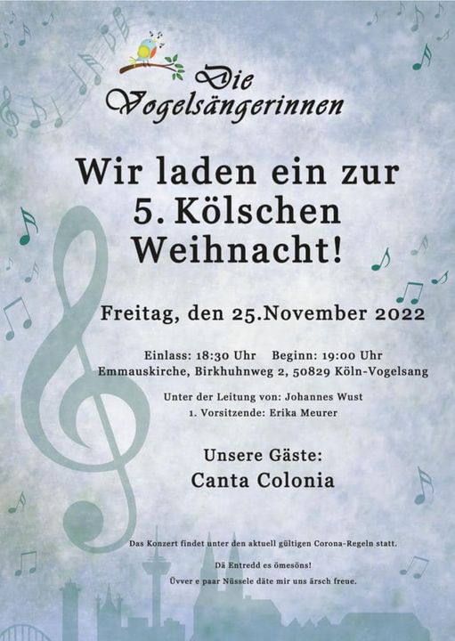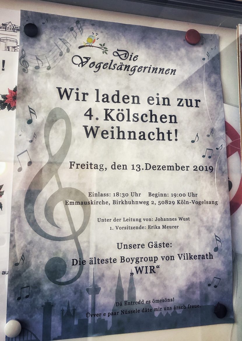 Wir sind ein Kölner Damenchor aus dem westlichen Vorort Vogelsang, der seit 1988 ausschließlich in kölscher Mundart kölsches […]