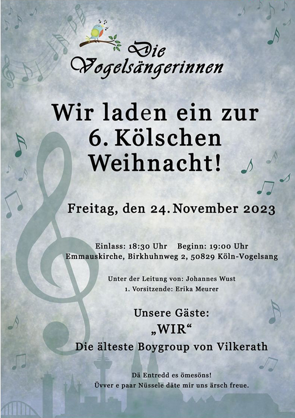 Die Vogelsängerinnen laden zur 6. Kölschen Weihnacht